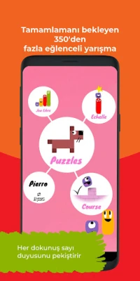 Uygulama, her biri çocuğunuzun farklı bir yöntemle öğrenmesini sağlayan dört özel etkinlik barındırır. 'Güvenli Bölge', serbest keşif ve deneyimleme alanı sunarken, ebeveynler ve öğretmenler için temel matematik kavramlarını açıklamakta harika bir araçtır. 'Puzzle' bölümünde, çocuğunuz kendi yapboz parçalarını oluşturarak gizli görselleri ortaya çıkarır ve her hamlede sayısal algısını güçlendirir; 250'den fazla bulmacayı çözerek binlerce işlem yapar. 'Merdiven' etkinliği, büyük sayıların küçük sayılarla ilişkisini sezgisel olarak anlamayı ve stratejik düşünmeyi teşvik eder. Son olarak, 'Koşu' bölümü, zihinden hızlı hesaplamalar yaparak Noom'u yönlendirme becerisini geliştirir, böylece çocuklar sayıları hızla tanıma ve toplama pratiği yapar. Kahoot! Sayılar from DragonBox, ödüllü DragonBox serisinin pedagojik ilkelerine sadık kalarak, ezberciliğe dayalı quiz'ler veya anlamsız tekrarlar yerine öğrenmeyi oyuna kusursuz bir şekilde entegre eder. Uygulamadaki her etkileşim, çocuğunuzun sayıları daha iyi anlamasını ve matematiğe olan sevgisini güçlendirmesini sağlayacak sağlam bir temel atmak üzere tasarlanmıştır.