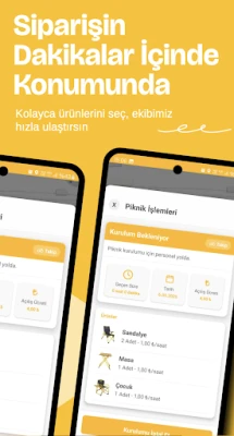 Piknik ile beklemek yok, sadece keyif var. Siparişinizi onayladığınız an, dinamik teslimat sürelerimiz hesaplanır ve deneyimli saha ekiplerimiz hızla harekete geçer. Seçtiğiniz noktaya ulaştıklarında, tüm setinizi sizin için titizlikle kurarak, anında kullanıma hazır hale getirirler. Üstelik, Piknik uygulamasının sunduğu canlı harita takibi ile ekipmanınızın size doğru yolculuğunu adım adım izleyebilir, tam zamanında yerinizde olmanın rahatlığını yaşayabilirsiniz. Açık havanın tadını çıkarırken, tüm lojistik detaylar Piknik'in güvencesi altında.